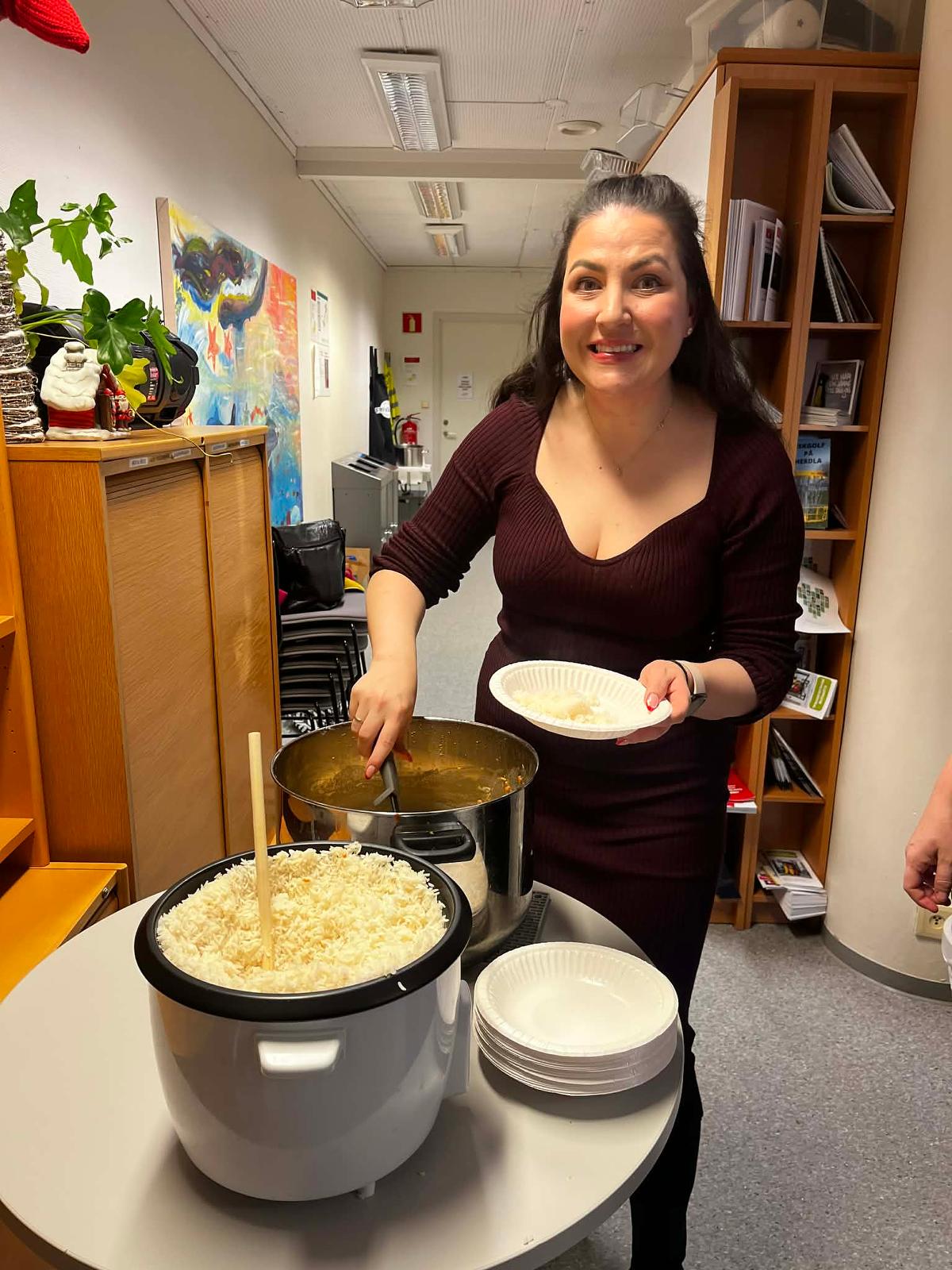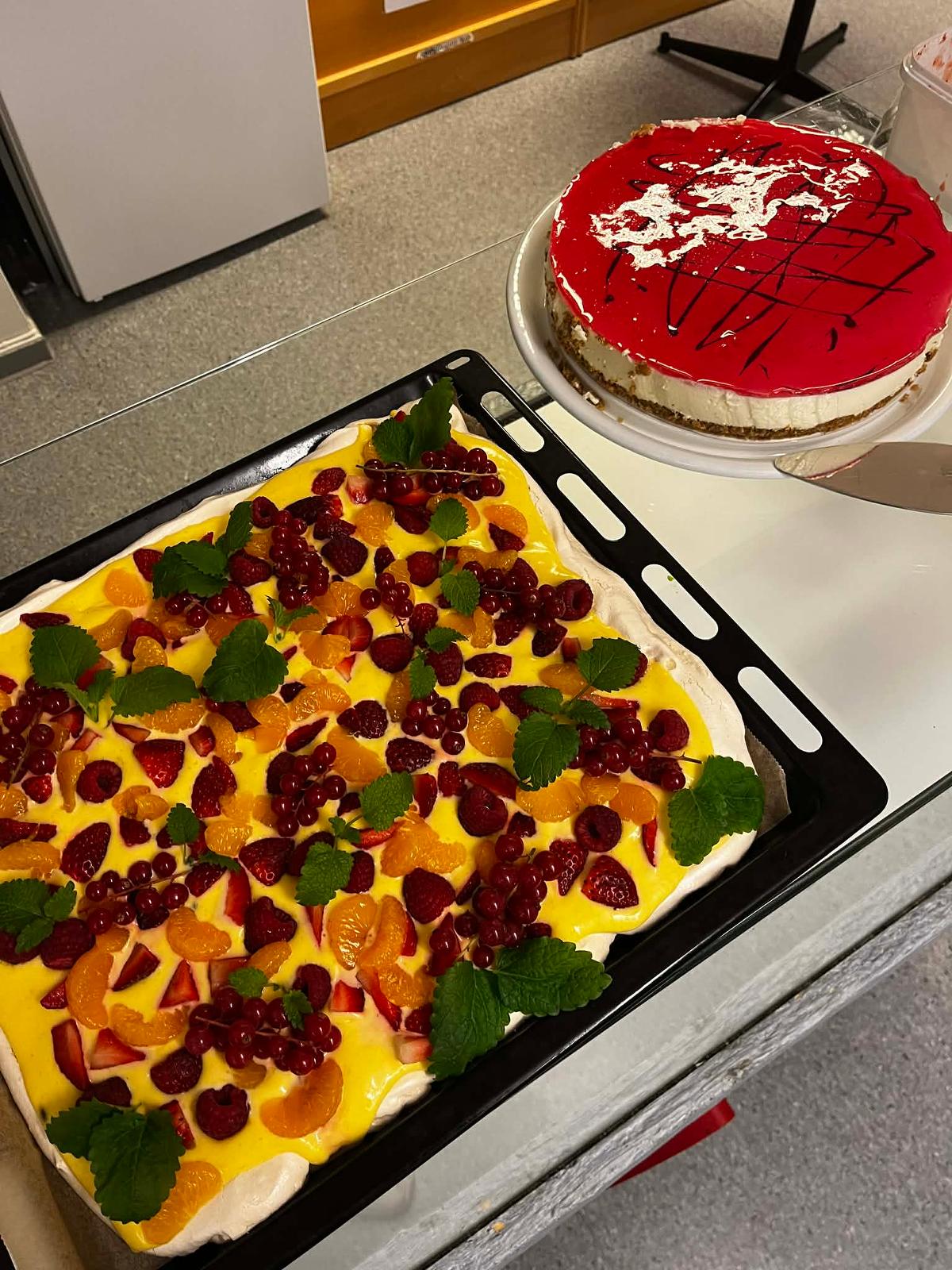 De daglige lederne hadde disket opp Tom Kha Gai suppe med ris, og pavlova med pasjonsfruktcurd. En frivillig hadde også tatt med en deilig ostekake med gelelokk!